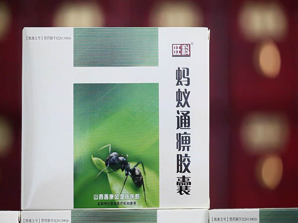 在山西晋康风湿病医院,专家们使用的药物,是自主研发的纯中药制剂,旺龙蚂蚁丸。旺龙蚂蚁丸以棕褐沙林蚁为君药并辅之以人参、制川乌、桂枝、透骨草、伸筋草、川桐皮、丹参、鸡血藤、蜈蚣、乌梢蛇、苍术、黄柏、薏苡仁、泽泻等十五味地道中药材。君臣左使,配伍合理,疗效显著。